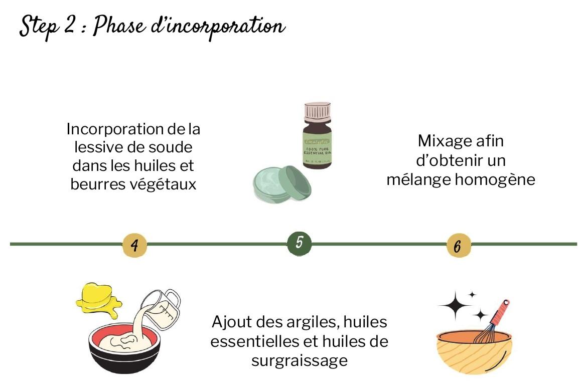 De plus, les huiles et beurres végétaux utilisés contiennent une part d’insaponifiables, condensés de bienfaits puisqu’ils ne vont pas réagir avec la soude.